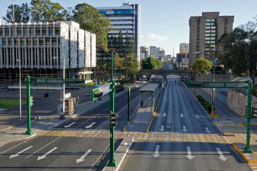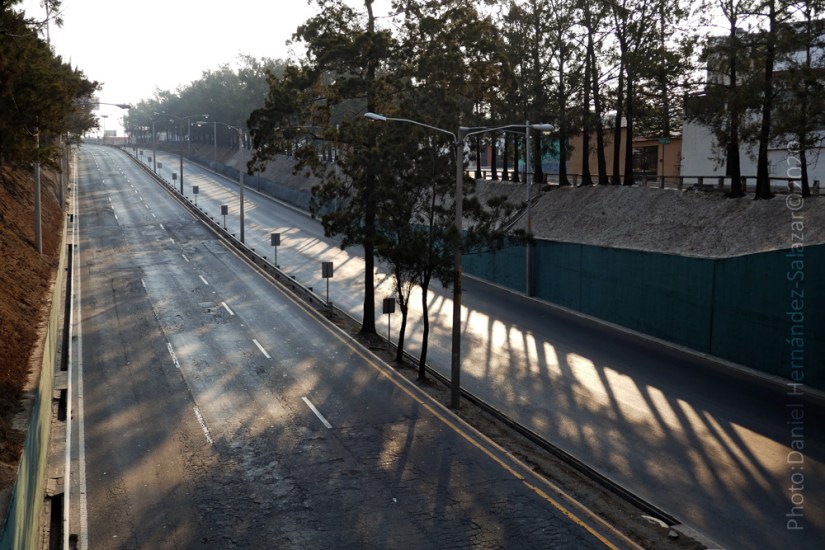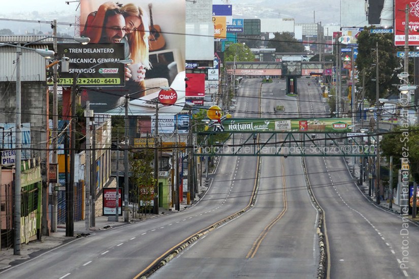 Calzada Aguilar Batres vacía. / Empty Aguilar Batres roadway.