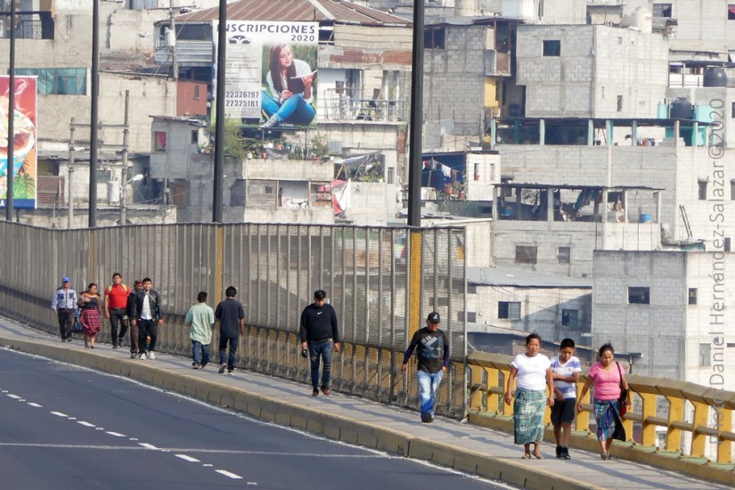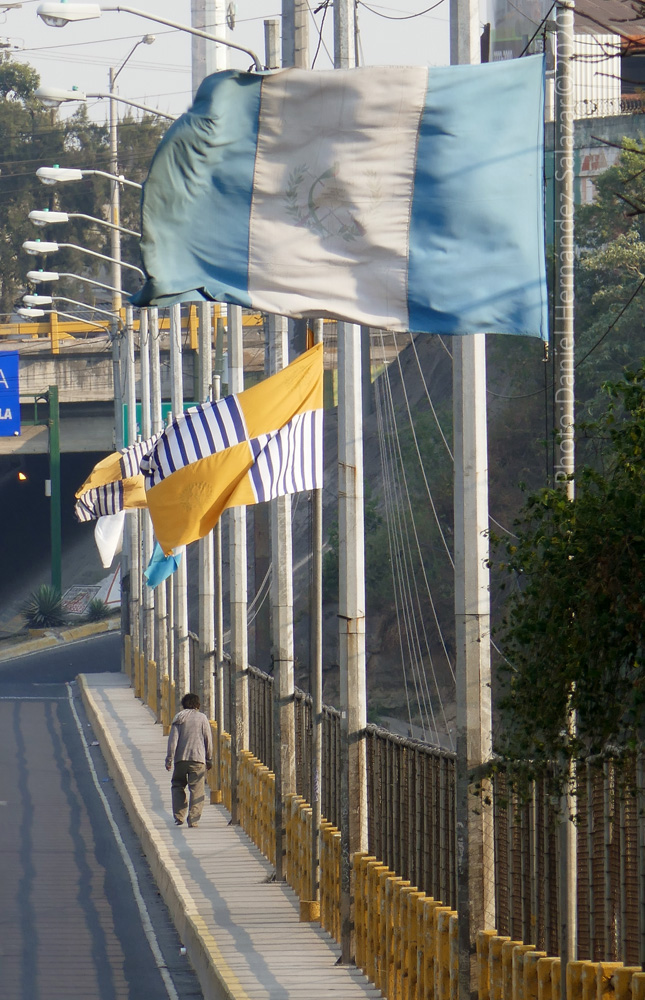 Indigente sobre el puente de El Naranjo. / Homeless walking on El Naranjo bridge.